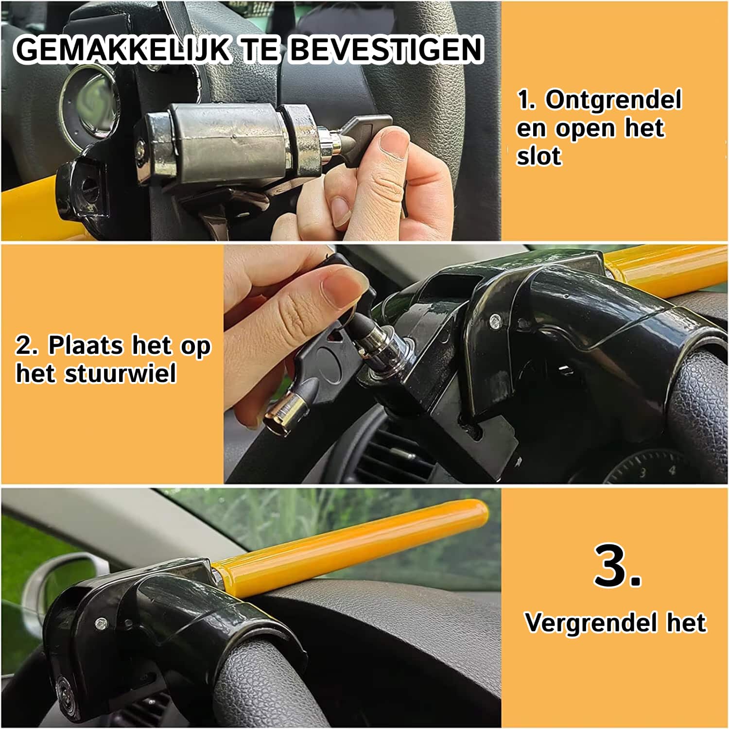 Zeker! De heldere gele kleur biedt maximale zichtbaarheid, en waarschuwt potentiële dieven onmiddellijk dat uw voertuig beschermd wordt door professionele beveiligingsapparatuur.