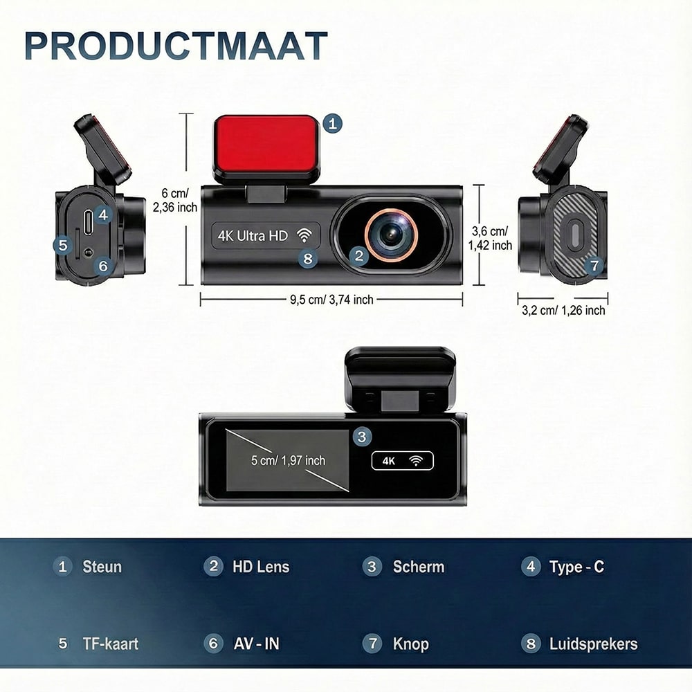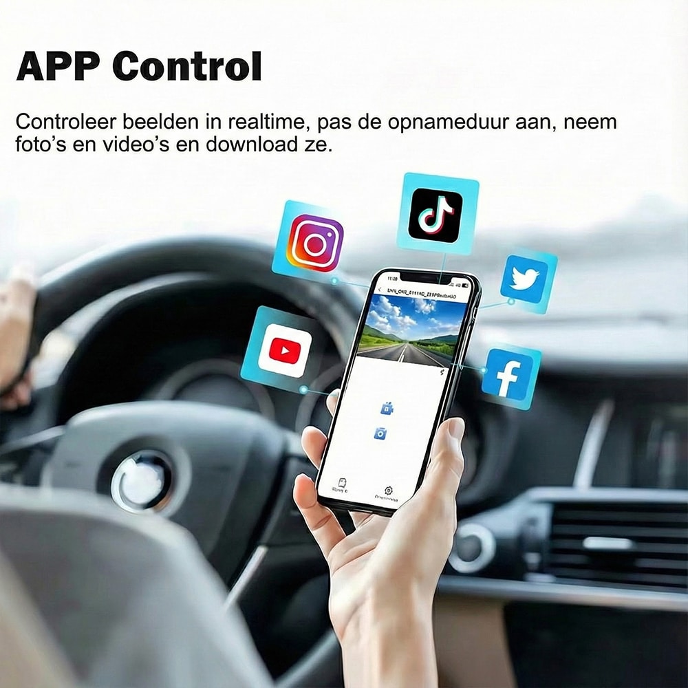 Absoluut. Via de ingebouwde Wi-Fi-functie verbindt u uw smartphone direct met de dashcam. U kunt beelden bekijken, downloaden en delen zonder fysieke toegang tot de geheugenkaart, ideaal voor snelle controles.