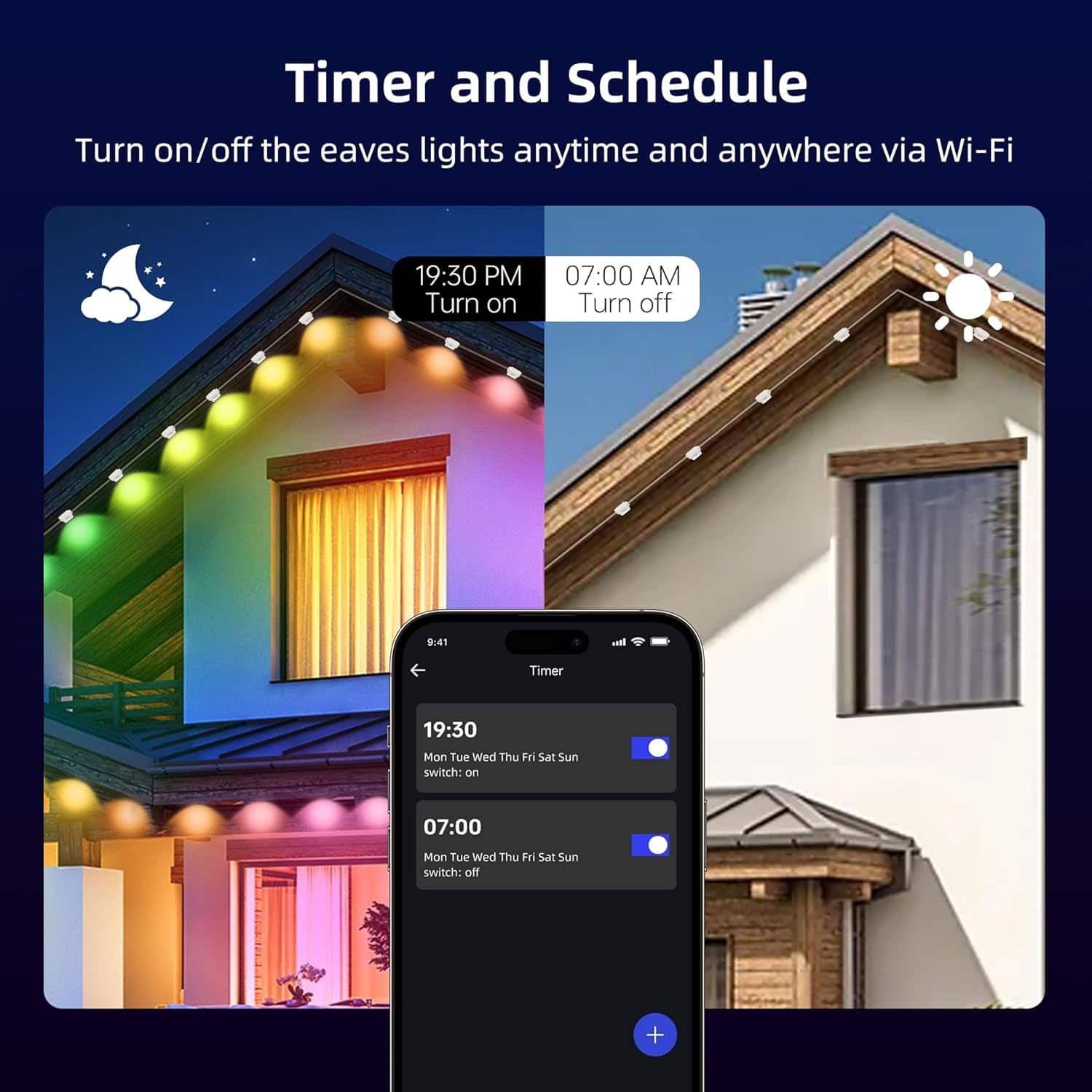 Set automatic on/off schedules through the app. Your lights activate at sunset and turn off at bedtime automatically, saving energy while ensuring your home always looks welcoming.