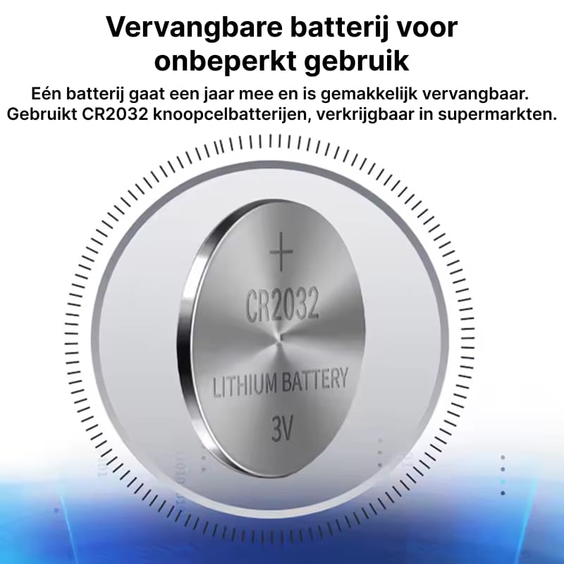 MeowiMap gebruikt standaard CR2032-batterijen die tot 12 maanden meegaan bij normaal gebruik. De batterij is eenvoudig te vervangen zonder tools, waardoor uw kat continu beschermd blijft zonder onderbrekingen of gedoe met opladen voor maximale gebruiksgemak.