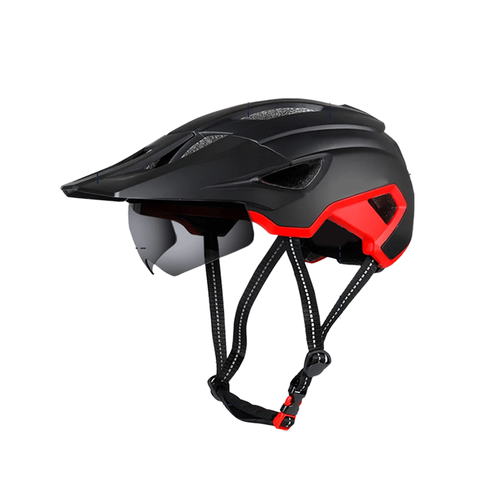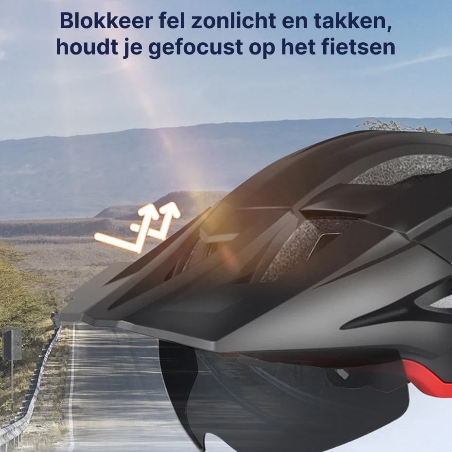 Nee, de zonneklep is zorgvuldig gepositioneerd om schittering te blokkeren zonder uw zicht naar beneden te belemmeren. Het ontwerp biedt schaduw voor uw ogen terwijl volledige zichtbaarheid van de weg en obstakels behouden blijft voor maximale veiligheid.