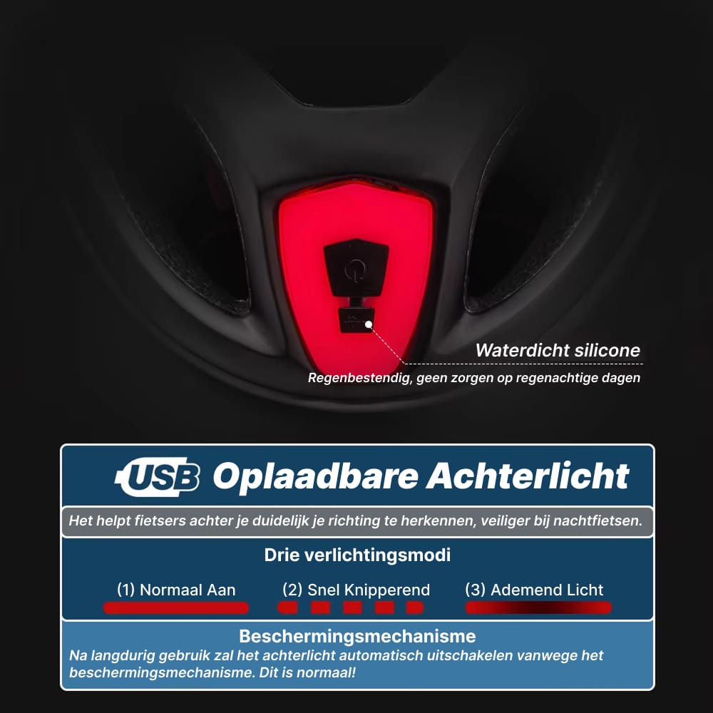 Absoluut! De helm heeft een volledig waterdicht ontwerp met afgedichte naden die alle elektronische componenten beschermen. De LED-verlichting en oplaadpoort zijn speciaal ontworpen om betrouwbaar te functioneren bij regen, mist en natte omstandigheden zonder prestatievermindering.