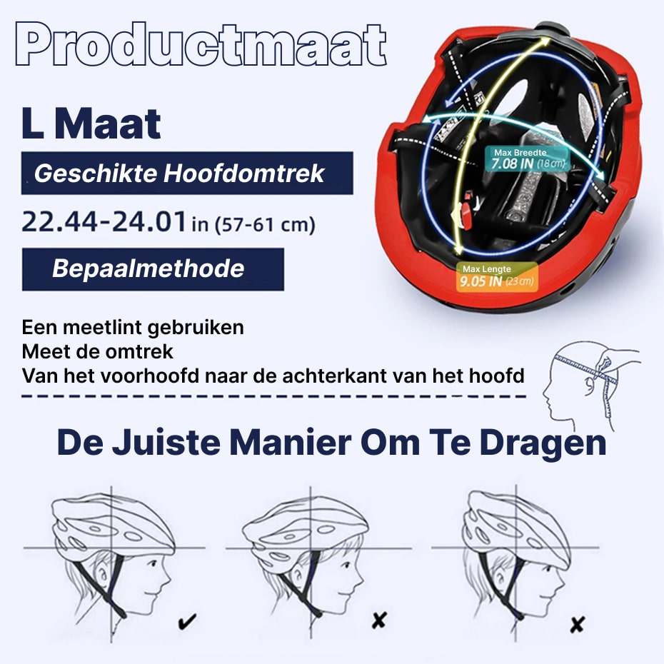Ja, deze helm is geschikt voor hoofdomtrekken van 57-61cm. De roterende verstelknop maakt nauwkeurige pasvorm mogelijk, waardoor comfort en veiligheid gegarandeerd zijn. Meet gewoon rond uw voorhoofd naar de achterkant van uw hoofd voordat u koopt.