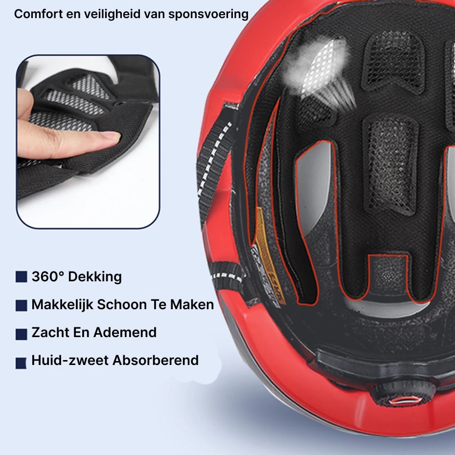Volledige hoofdbescherming met zachte, ademende sponsvoering die 360-graden dekking biedt. Het huidvriendelijke materiaal absorbeert zweet effectief en blijft gemakkelijk schoon te maken voor langdurige frisheid.
