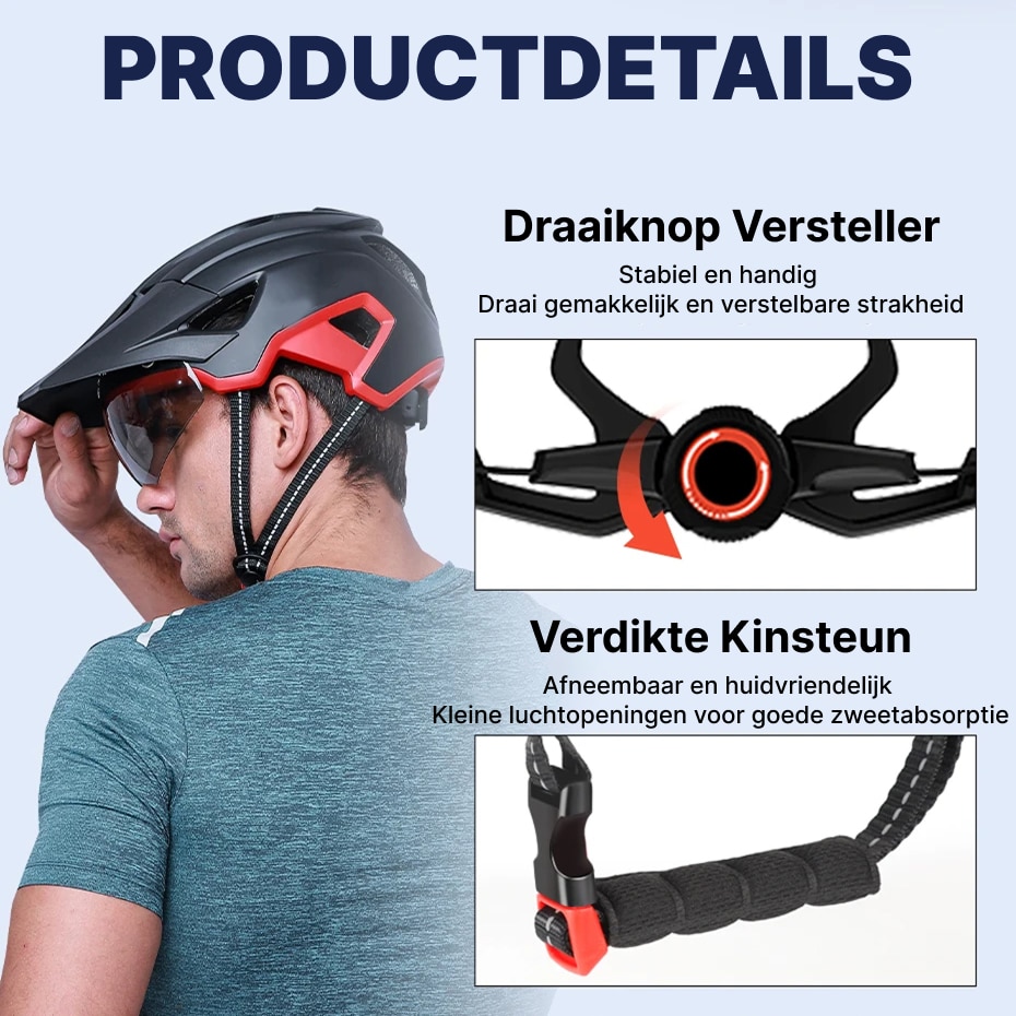 Pas de helmstrakheid moeiteloos aan met het handige roterende knopsysteem. Dit stabiele mechanisme zorgt voor een veilige, gepersonaliseerde pasvorm die comfortabel blijft tijdens krachtige fietsactiviteiten.