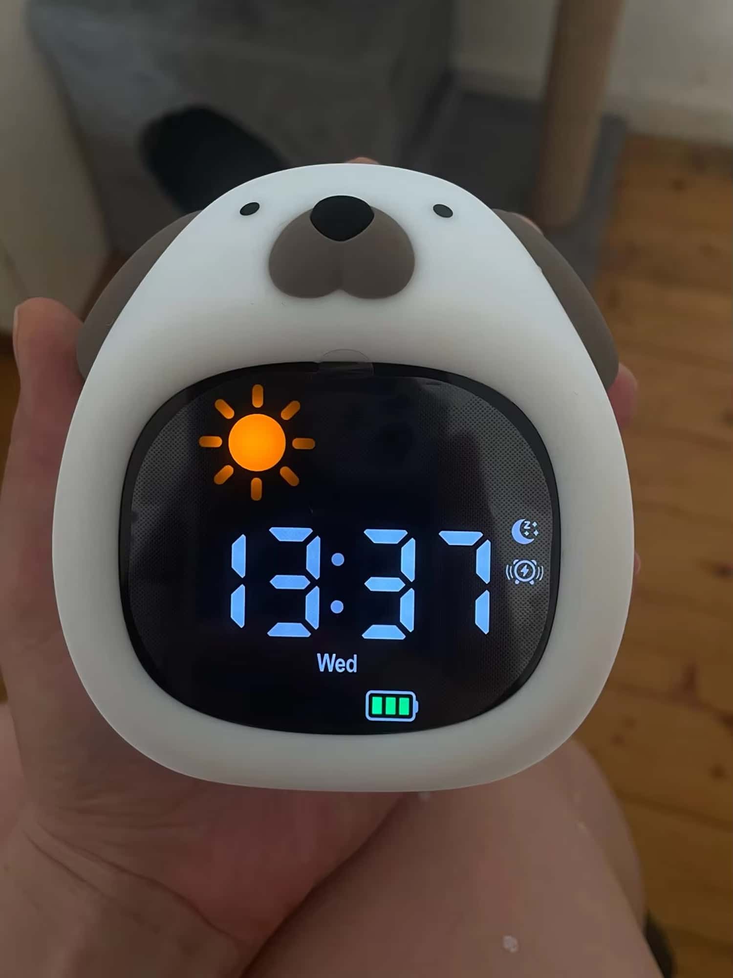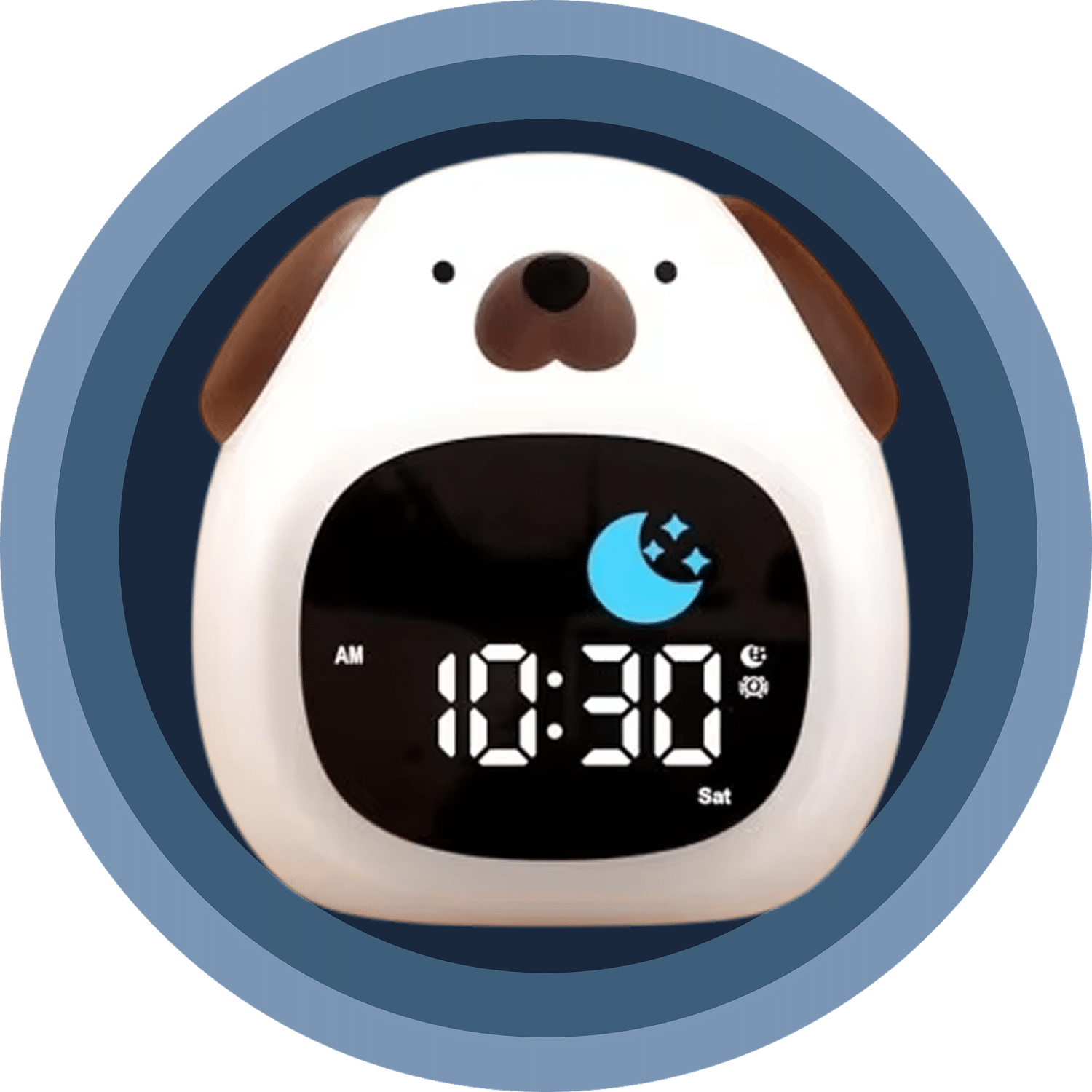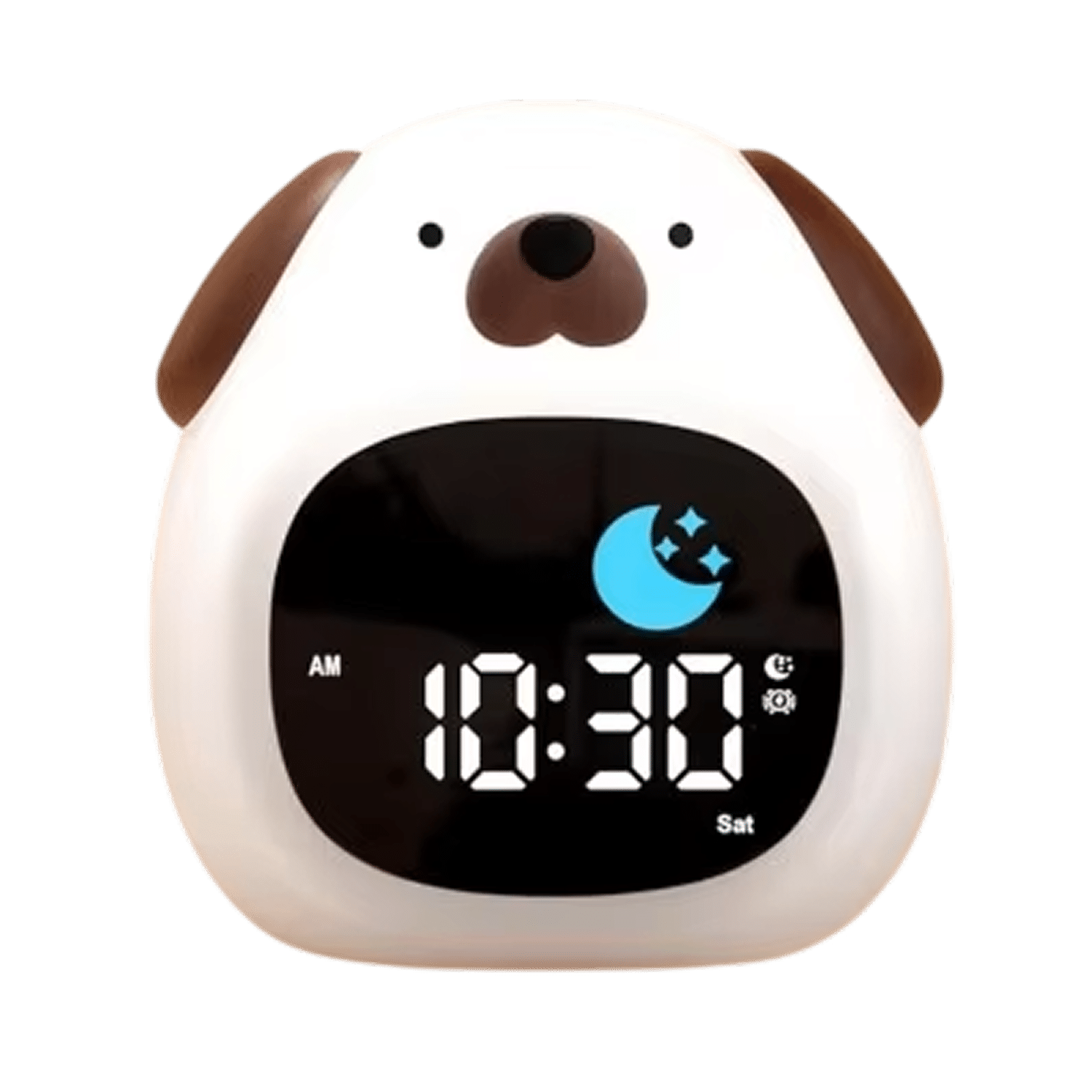 The MornoChan Alarm Clock uses visual cues like red and green lights to indicate bedtime and wake-up times, making sleep training intuitive for children.