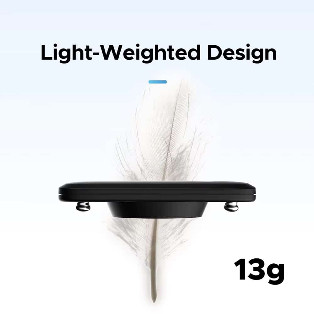 The ultra-lightweight 13-gram design uses skin-friendly materials and adjustable elastic strapping for maximum comfort. The ergonomic construction prevents chafing and irritation.