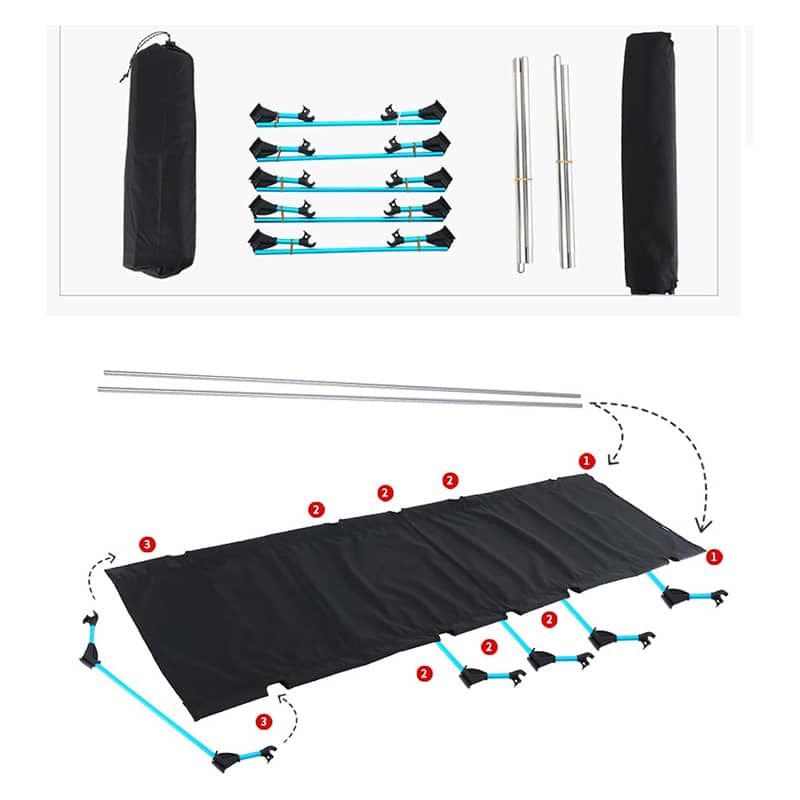 Setting up the NapixCamo Cot is a breeze thanks to its foldable aluminum shock-cord structure. It assembles in minutes and folds down to a compact 55x14cm size, perfect for backpacking.