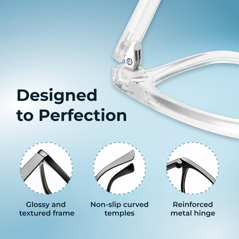 NezoVis glasses feature professional-grade multi-layer lens technology that's been optometrist-tested and approved, unlike cheaper alternatives with basic coatings. Our premium TR90 frames offer superior durability and comfort, reinforced metal hinges ensure longevity, and the scratch-resistant lenses maintain clarity for years. We prioritize genuine eye health protection over cost-cutting, delivering measurable results that cheaper glasses simply cannot match.