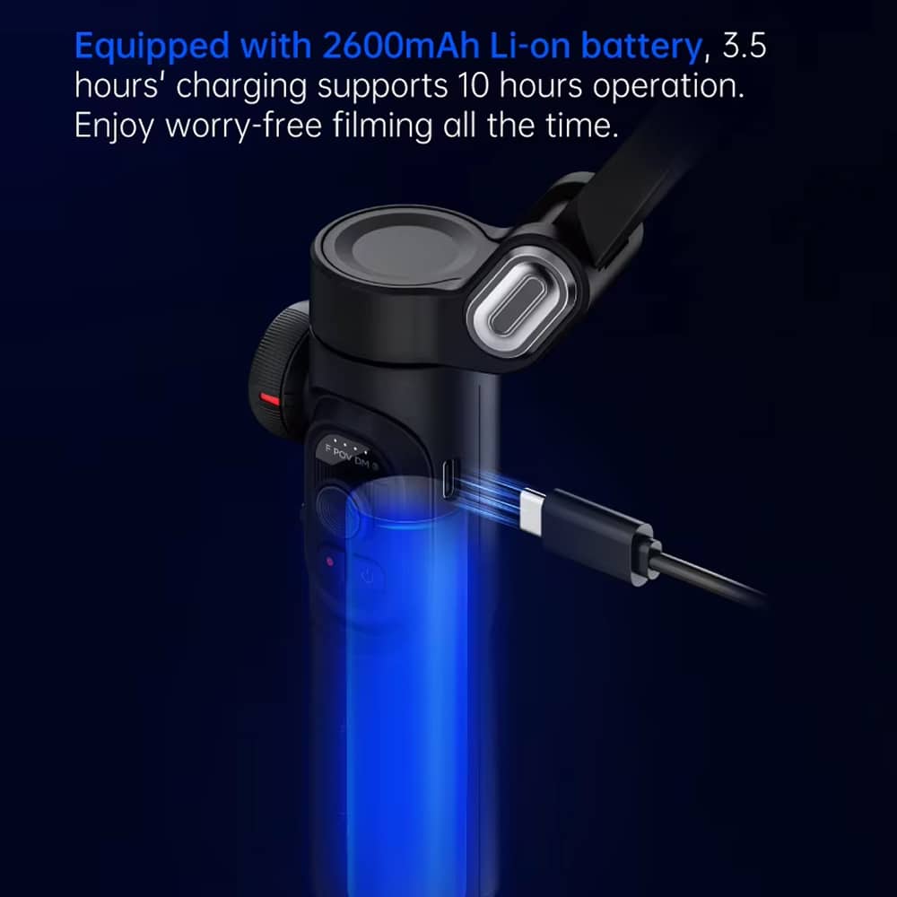 The 2600mAh battery charges fully in approximately 2.5 hours using the included USB-C cable. Fast-charging technology ensures minimal downtime between filming sessions, keeping you productive throughout your creative workflow.