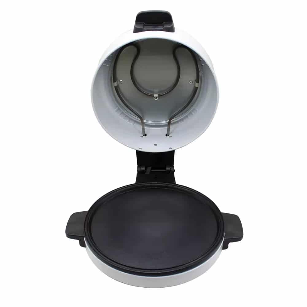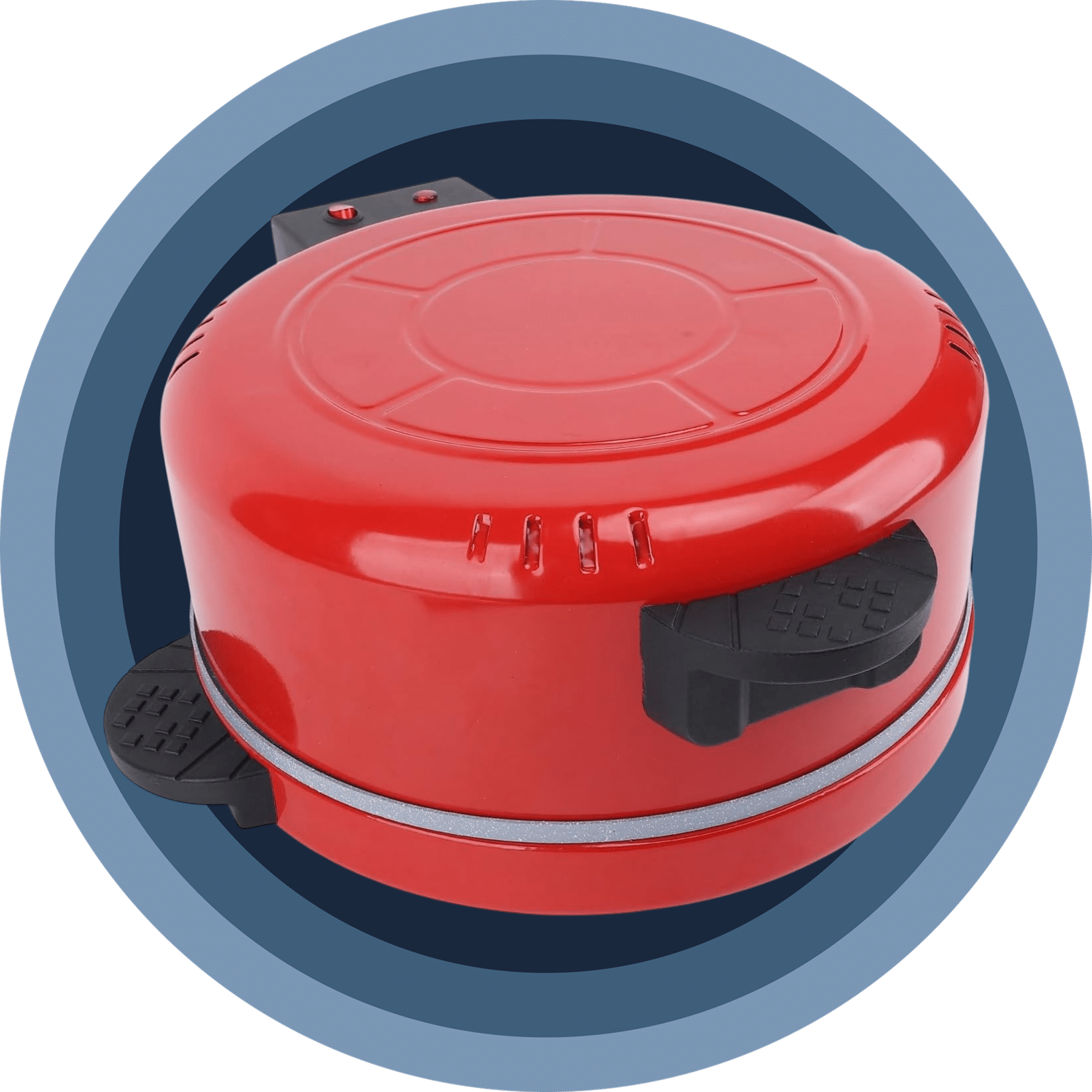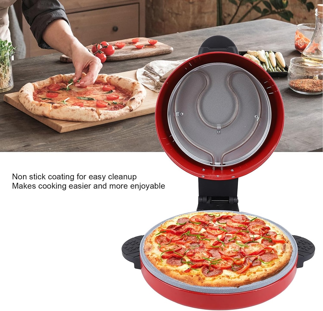 The PizzeBake accommodates pizzas up to 30cm (approximately 12 inches) in diameter, perfect for personal pizzas or medium-sized family portions. This size works well for most homemade pizza recipes.