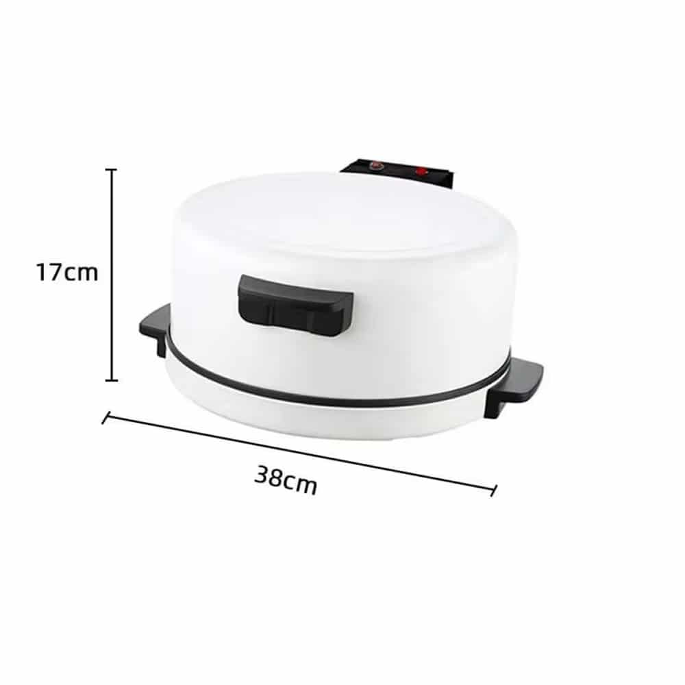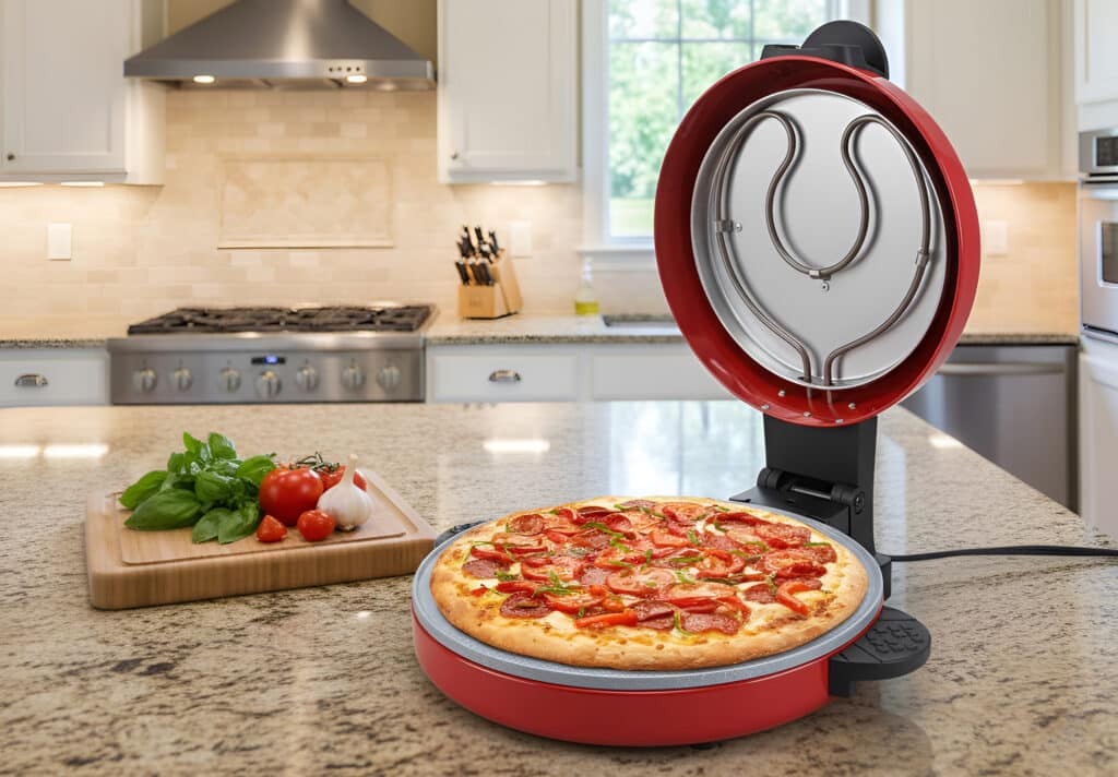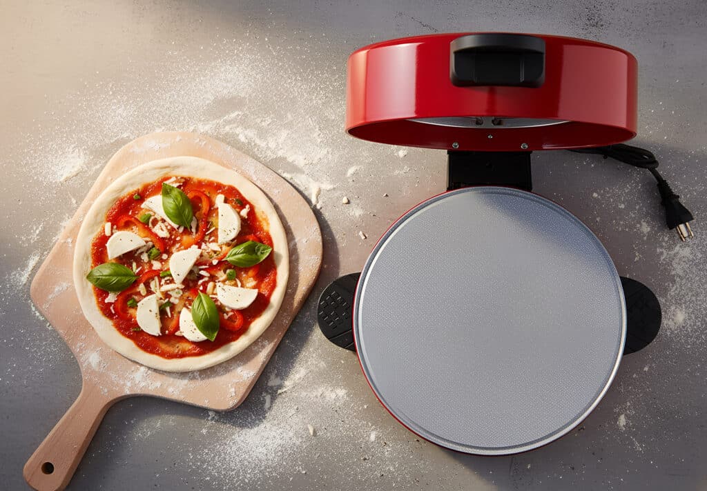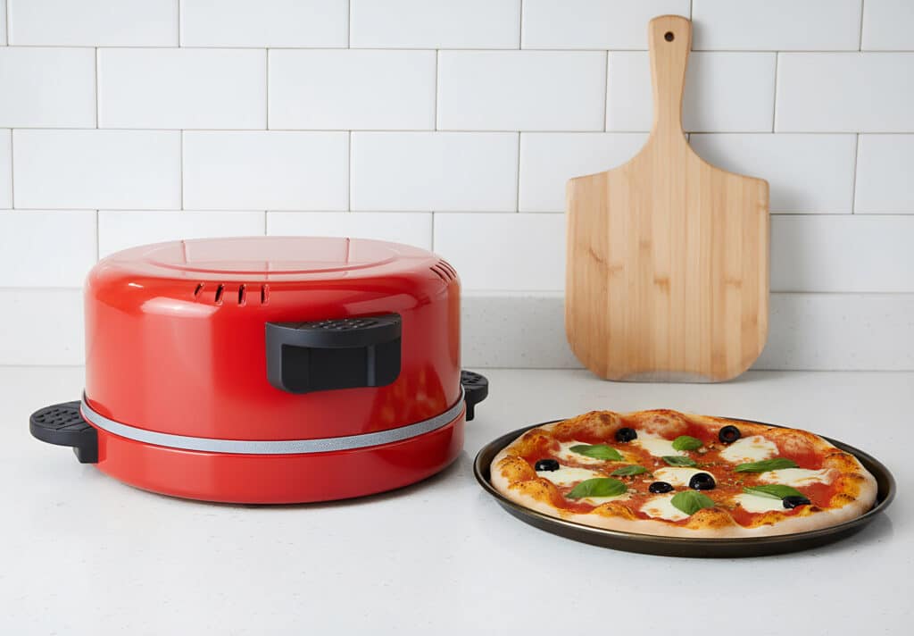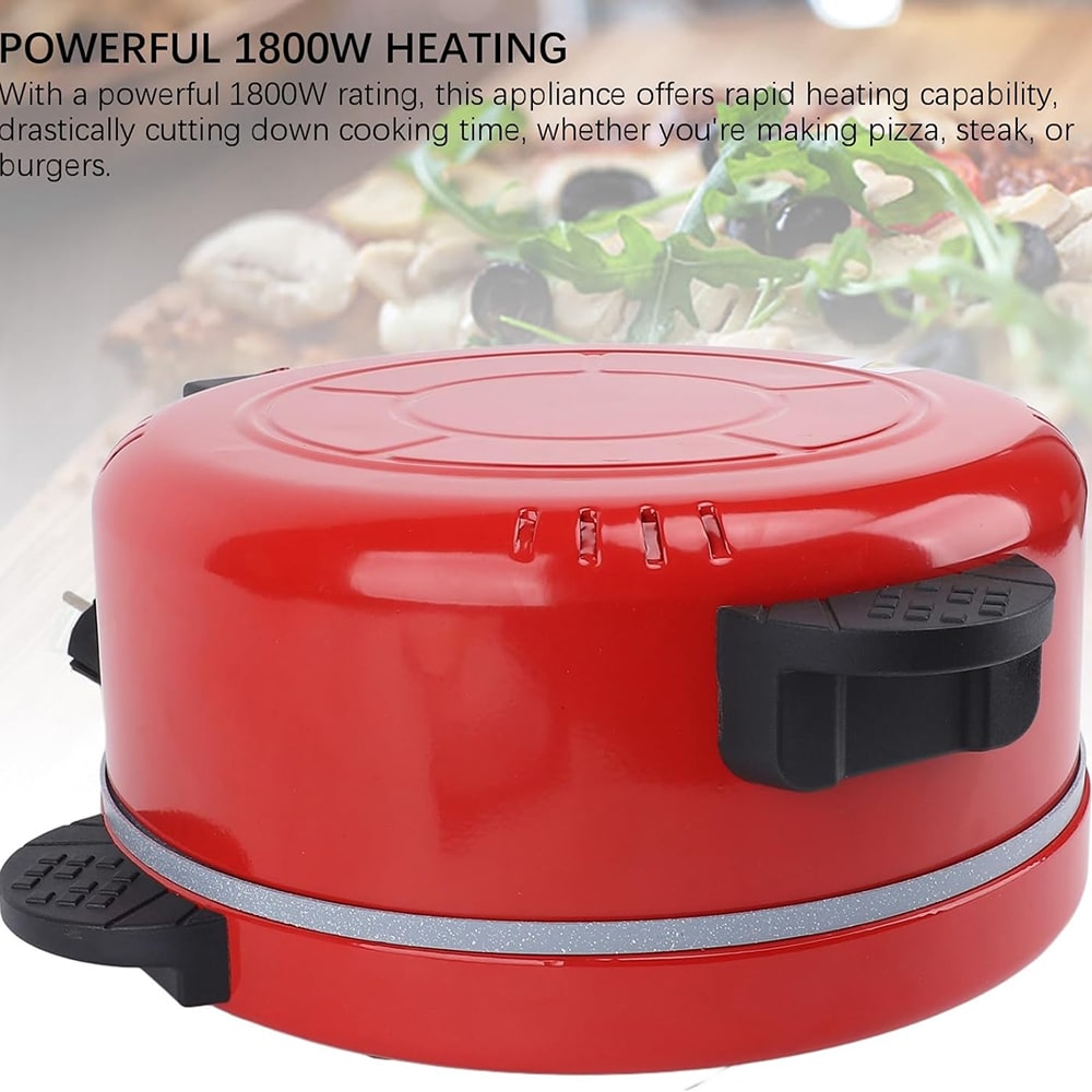 The PizzeBake accommodates pizzas up to 30cm (approximately 12 inches) in diameter, perfect for personal pizzas or medium-sized family portions. This size works well for most homemade pizza recipes.