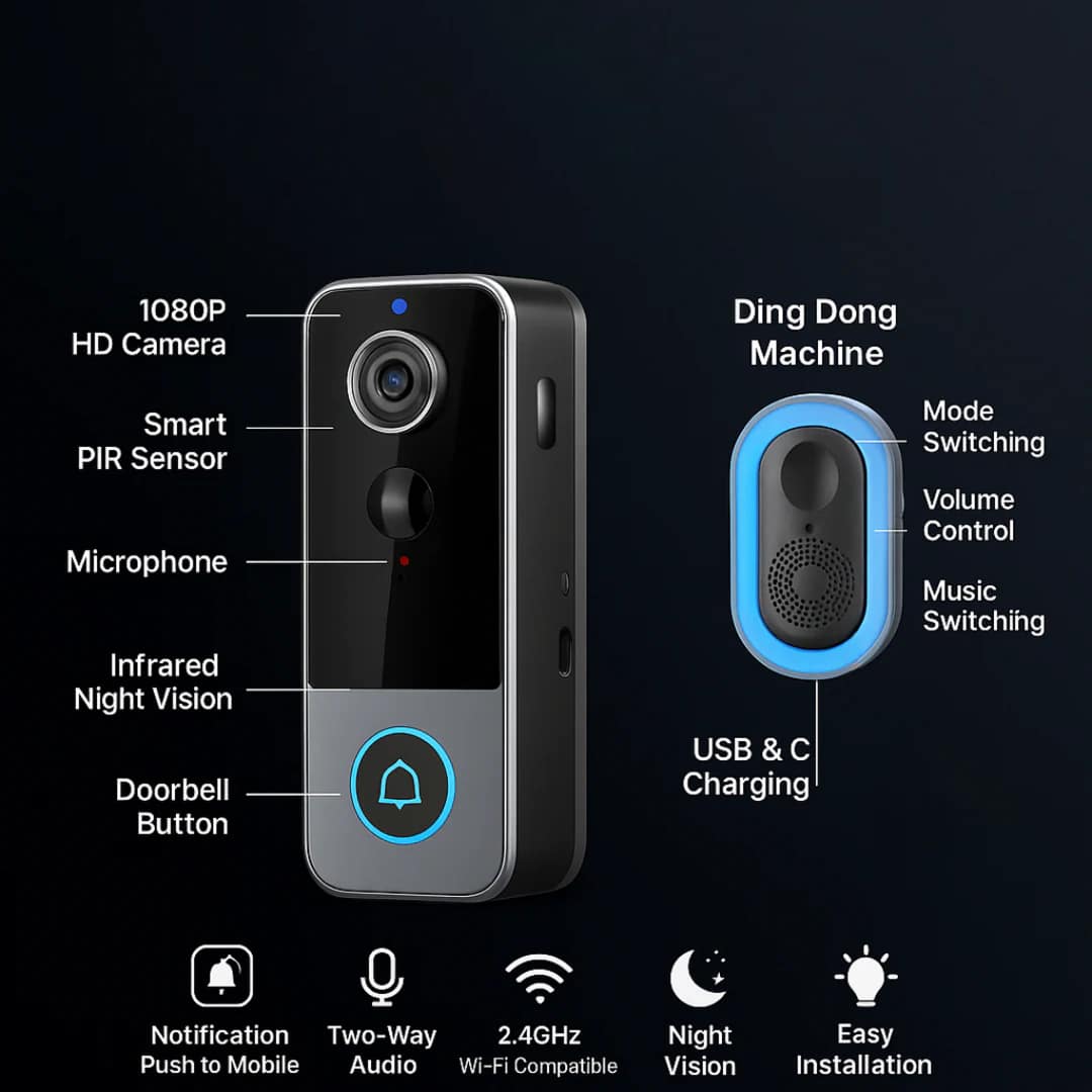 The PurePeeki Smart Video Doorbell records in full 1080P high-definition resolution. This provides crystal-clear video quality with excellent detail, ensuring reliable identification of visitors and activity at your doorstep.