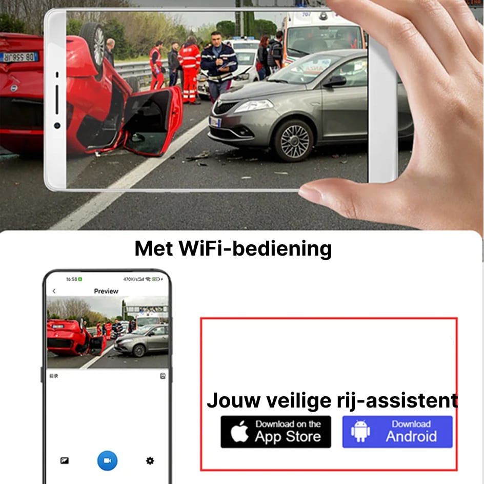 Absoluut. De ingebouwde WiFi-functie van de RiflexCam Spiegel Dashcam maakt directe verbinding met uw smartphone mogelijk. U kunt beeldmateriaal bekijken, downloaden en delen via de gratis app zonder de geheugenkaart te verwijderen.