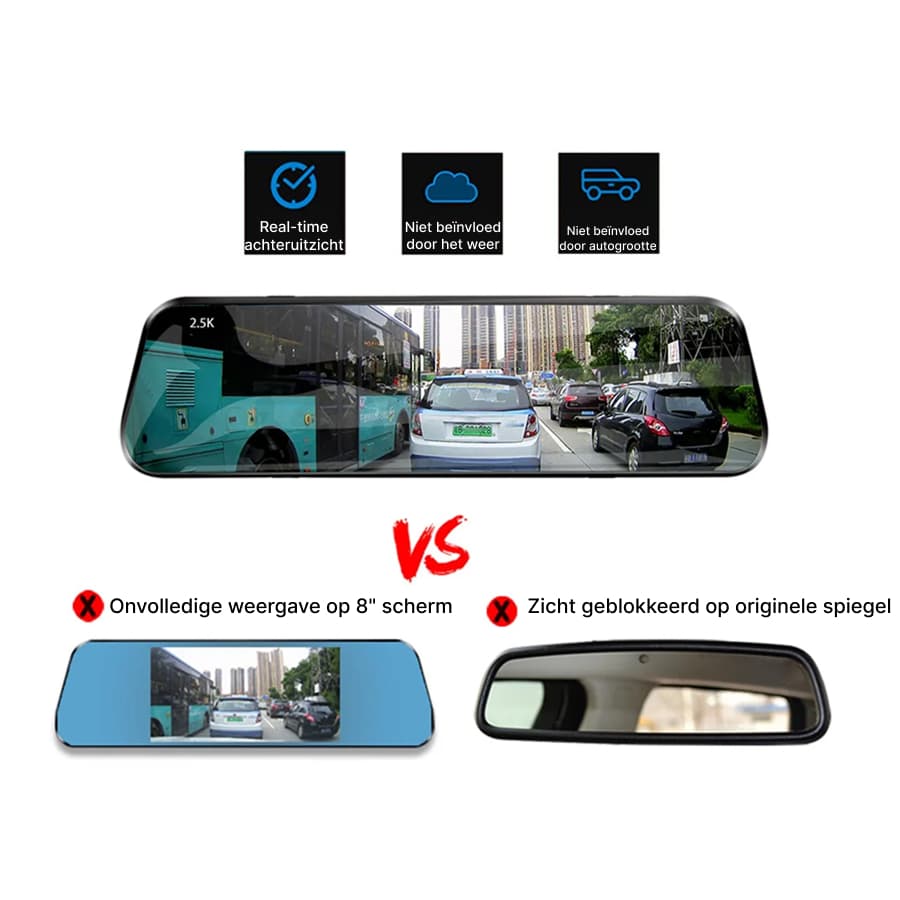 Ja, de RiflexCam Spiegel Dashcam past op de meeste standaard achteruitkijkspiegels met verstelbare elastische banden. Het slanke ontwerp is compatibel met verschillende voertuigmodellen en interfereert niet met zonnevizieren of andere functies.