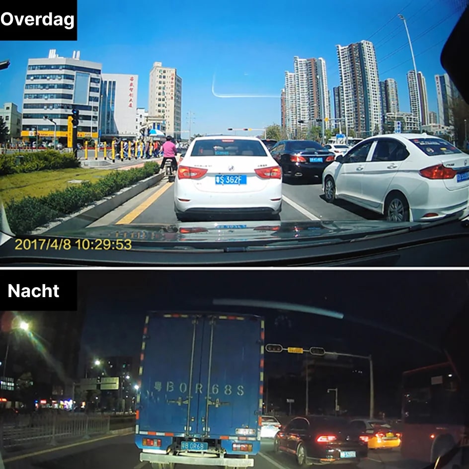 De achtercamera van de RiflexCam Spiegel Dashcam heeft infrarood nachtzicht dat werkt bij zeer weinig licht. Hoewel het niet in absolute duisternis werkt, presteert het uitstekend bij straatverlichting, koplampen en andere lichtbronnen.