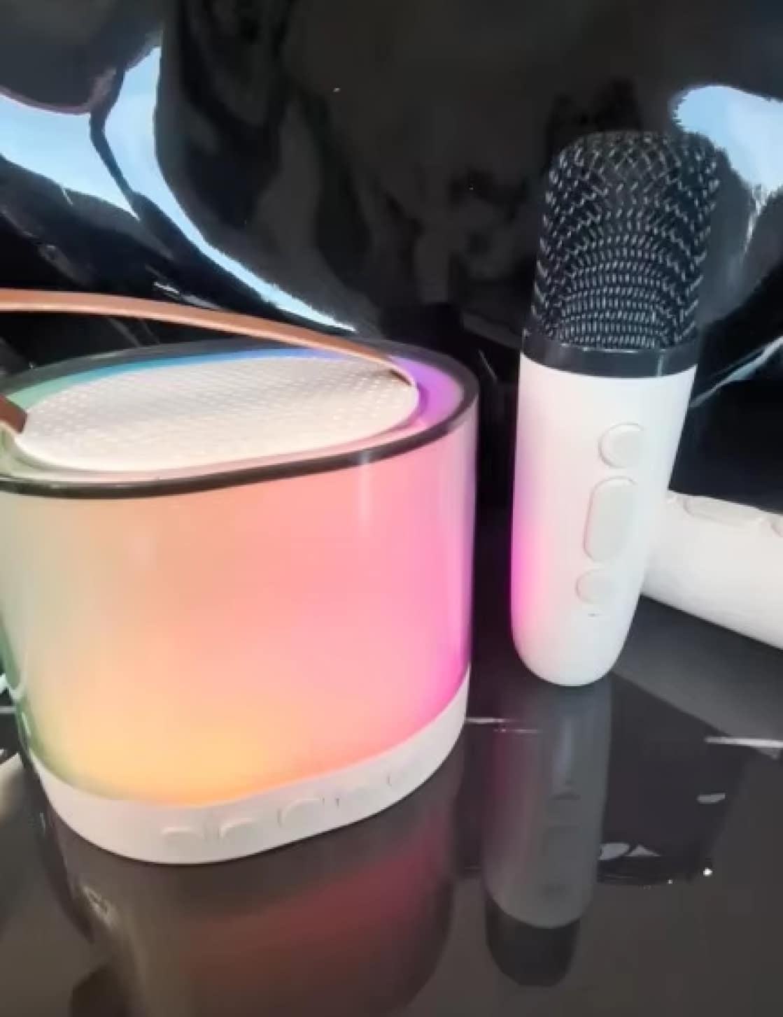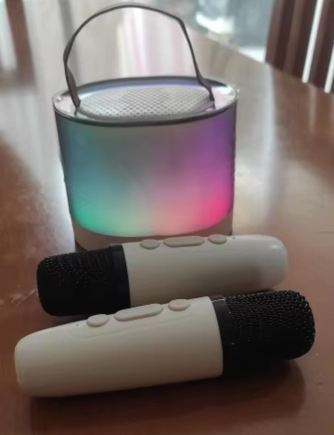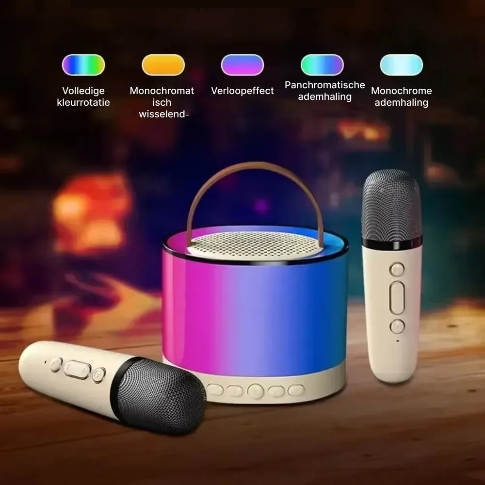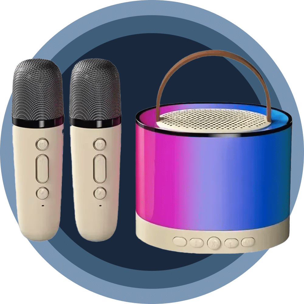 Het pakket bevat twee hoogwaardige draadloze microfoons, perfect voor duetten en groepsoptredens. Beide microfoons werken simultaan zonder interferentie, waardoor spontane samenzang mogelijk is.