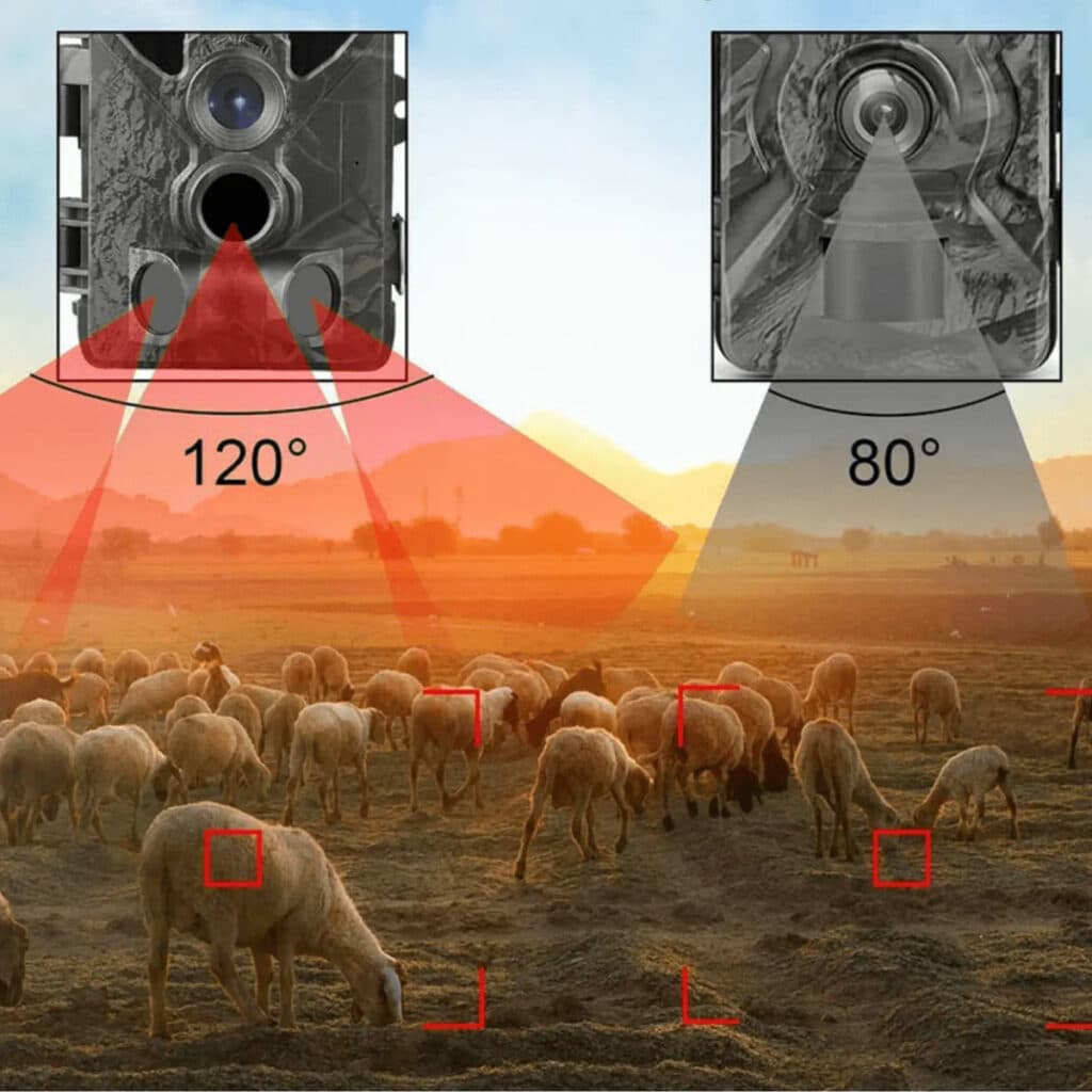 The 120° PIR Sensor Sight Angle captures a broader view of animal movements compared to standard trail cameras, providing more comprehensive coverage of your target area.