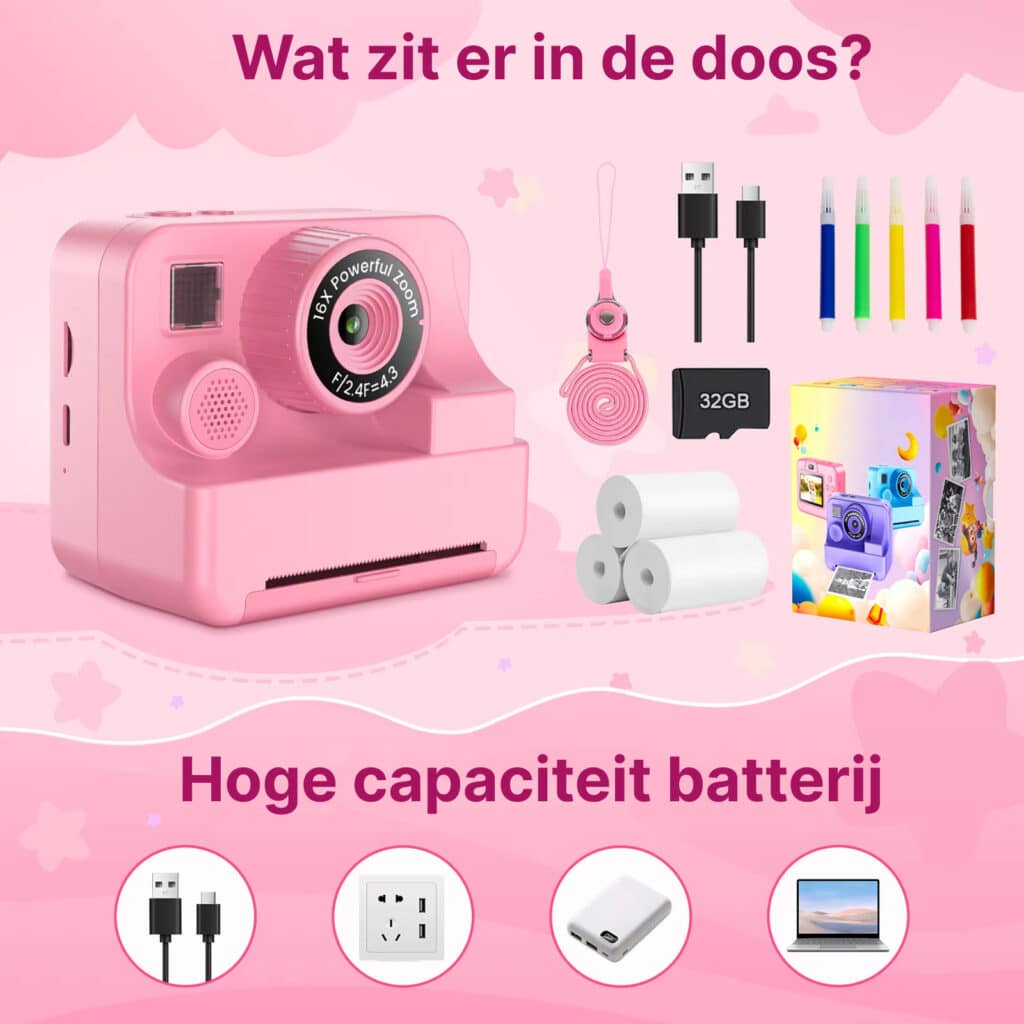 AMAZING! Na vier weken intensief gebruik is mijn dochter nog steeds enthousiast! De directe printfunctie houdt haar urenlang bezig en de fotokwaliteit is verrassend goed voor een kindercamera.