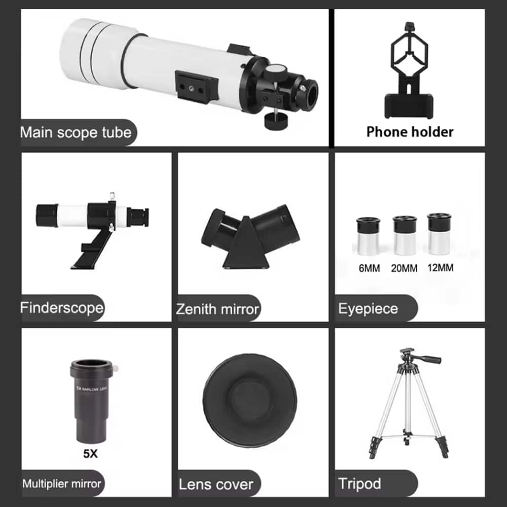 Everything you need arrives in one comprehensive package: three eyepieces, 5X Barlow lens, phone holder, moonlight filter, and zenith mirror. This complete kit eliminates guesswork and additional expenses, letting you start exploring the universe immediately upon unboxing.