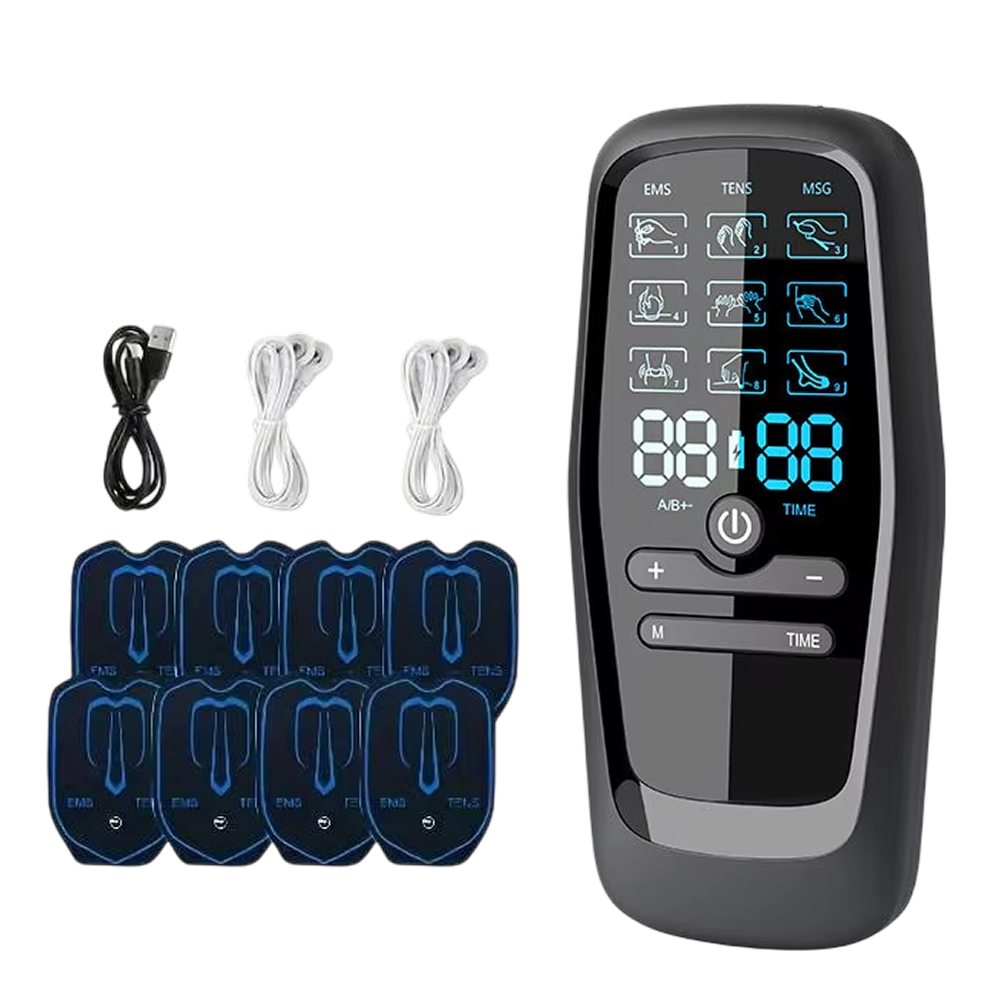 StimuuLet TENS Unit combines a multi-functional pain relief system with adjustable intensity control levels, powered by a long-lasting rechargeable battery and includes eight premium electrode pads for comprehensive therapy.