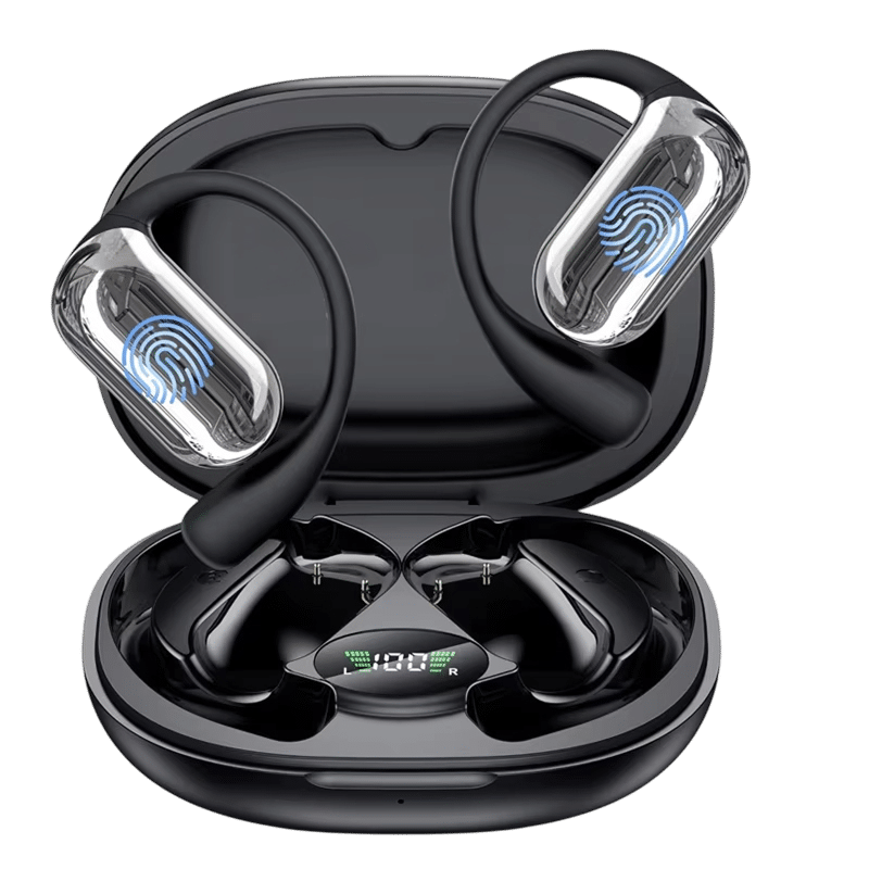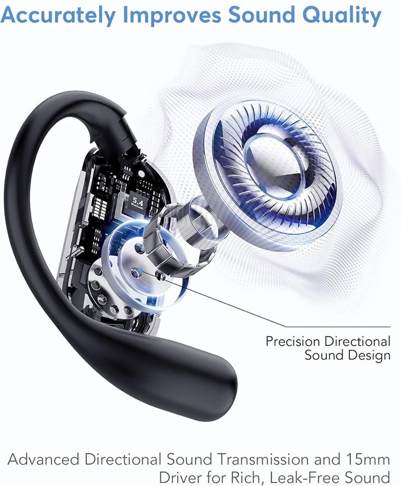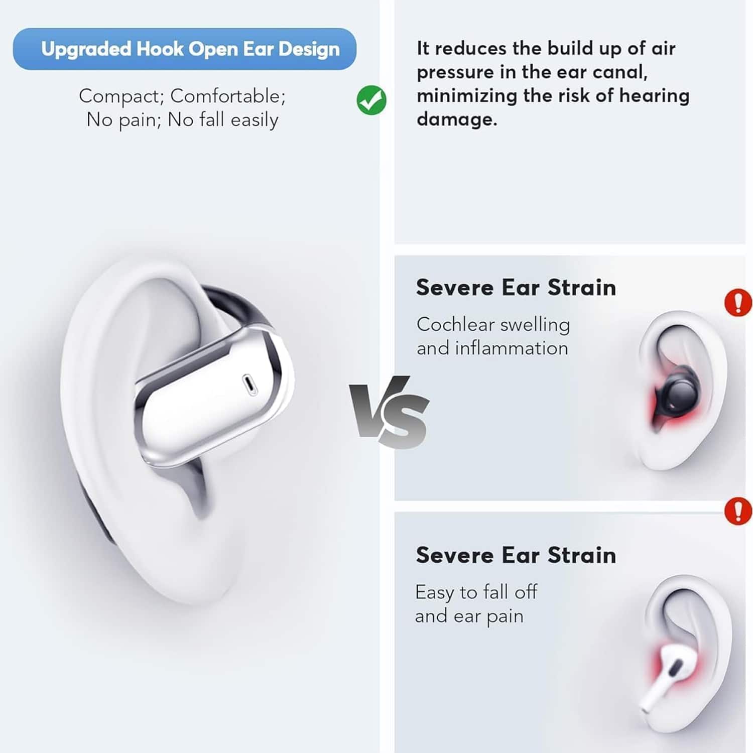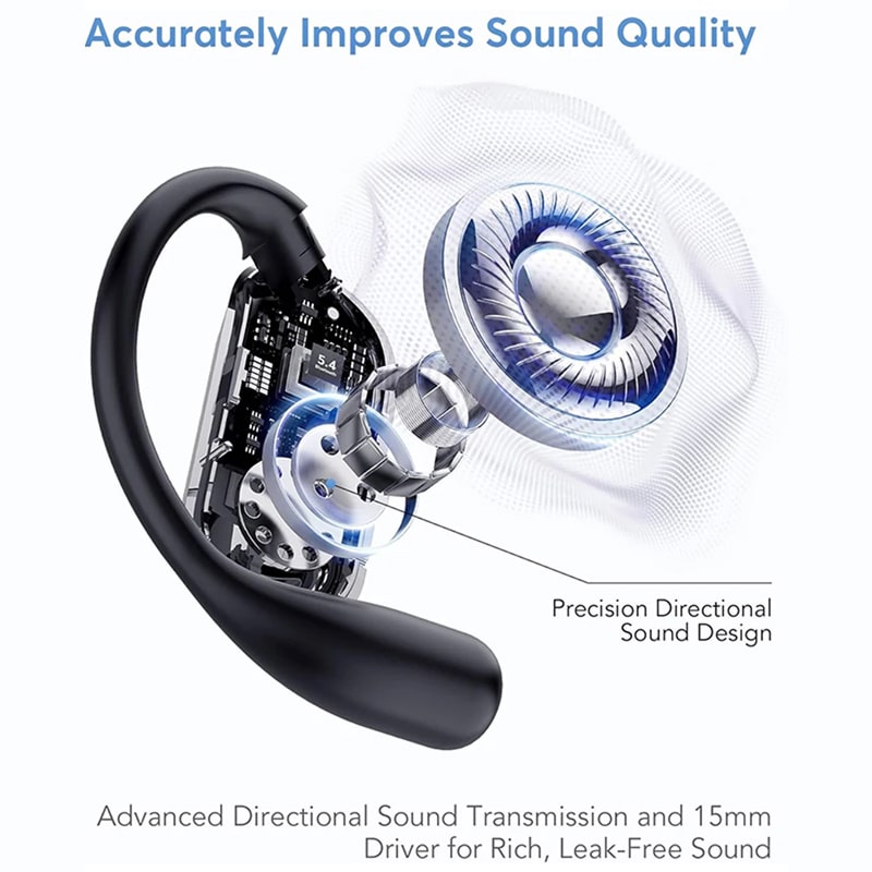 The innovative open-ear design with memory foam padding ensures maximum comfort during extended use, eliminating ear fatigue while the secure hook design prevents slipping.
