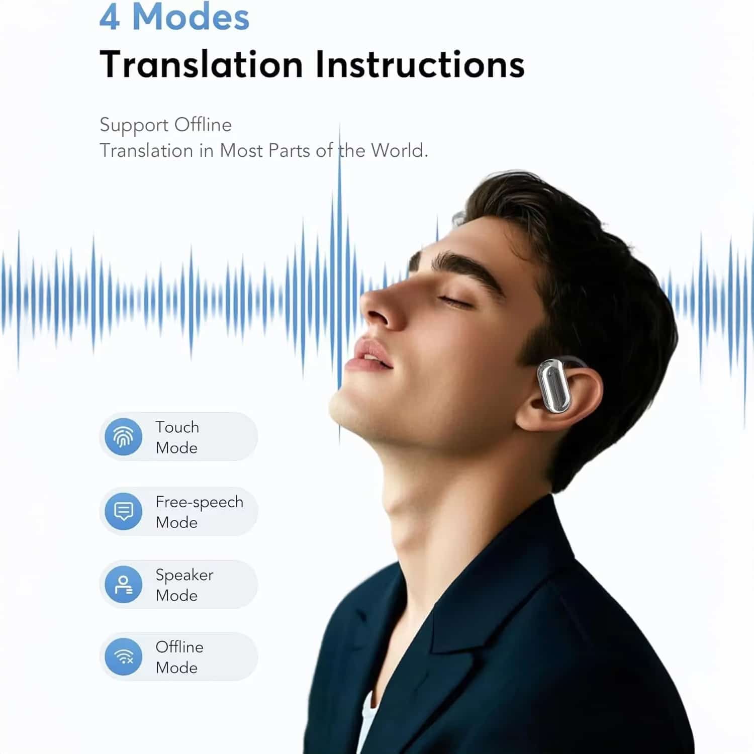 Advanced active noise cancellation technology filters background noise while precision directional sound focuses on conversation clarity, ensuring perfect translation accuracy even in noisy environments.