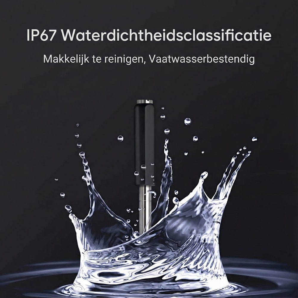 Ja, de sonde is volledig vaatwasmachinebestendig dankzij de IP67 waterdichte classificatie. U kunt deze ook gewoon afspoelen onder stromend water voor snelle schoonmaak na gebruik.