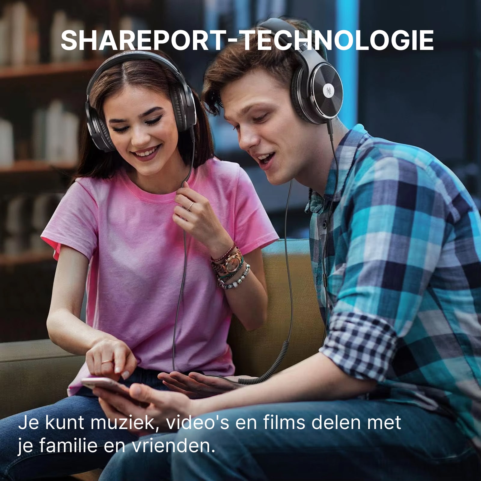 De share-port functie werkt alleen met bekabelde verbindingen. Voor draadloze apparaten heeft u een separate adapter nodig om de koptelefoons fysiek te verbinden met het apparaat.