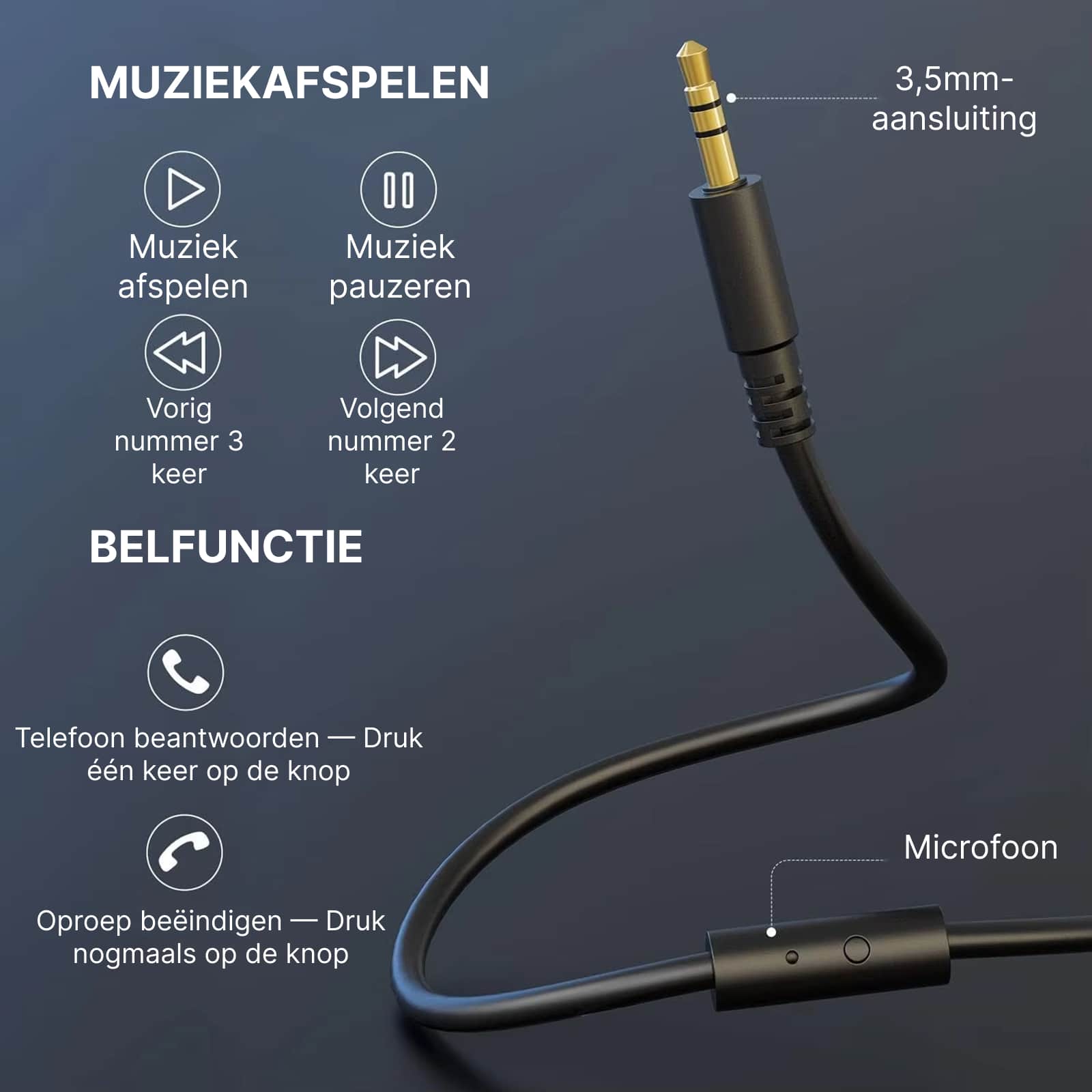 De in-line microfoon is perfect voor heldere communicatie en gesprekken, hoewel voor studio-opnames een dedicated opnamemicrofoon wordt aanbevolen voor hoogste kwaliteit resultaten.