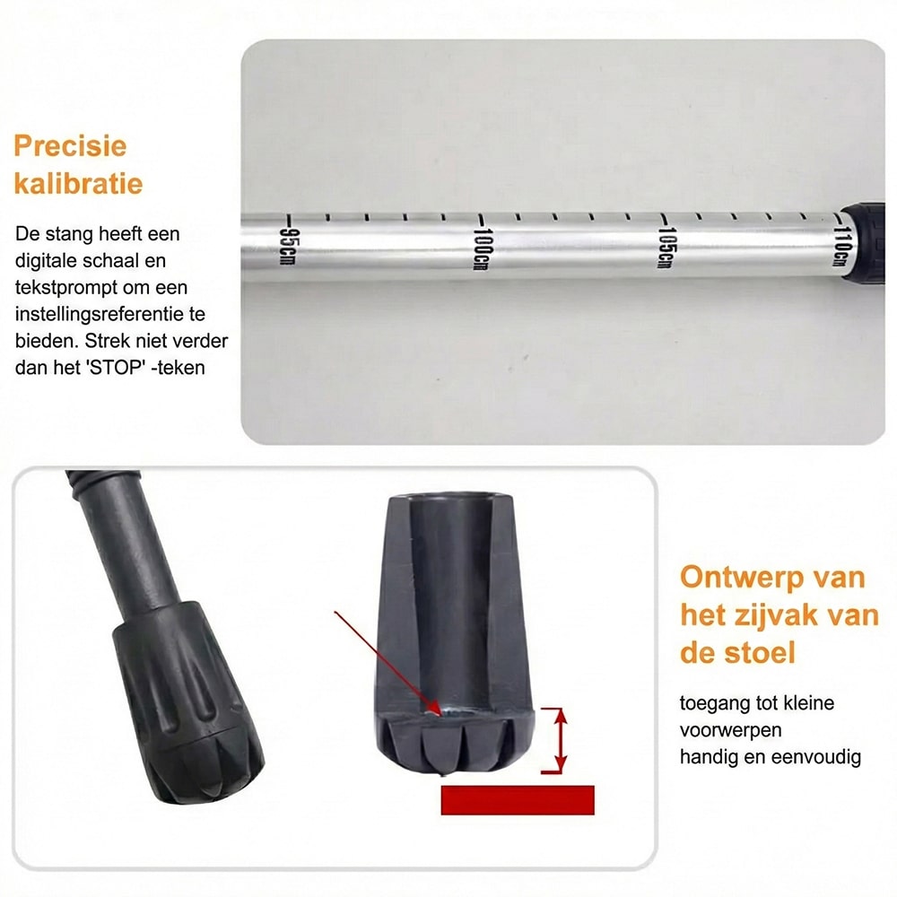 Absoluut, dankzij het vierdelige telescopische ontwerp kunt u de hoogte nauwkeurig instellen tussen 53 en 110 centimeter voor een perfecte ergonomische houding.