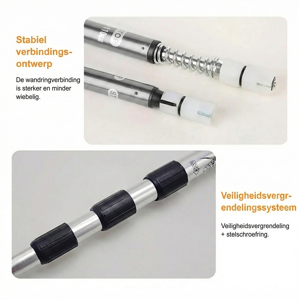 Zeker weten. Het professionele drie-in-één vergrendelsysteem zorgt voor een rotsvaste positionering. De digitale schaalmarkeringen helpen u bovendien om de stokken altijd veilig te gebruiken.