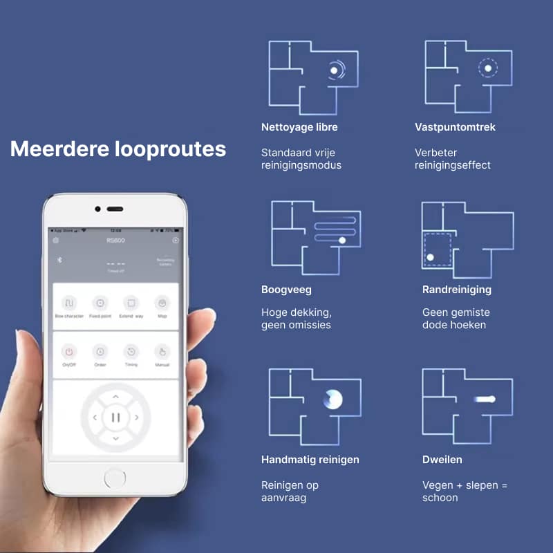 Ja, met de iOS/Android app kunt u de Vacotrix op afstand bedienen, schoonmaaksessies plannen en de voortgang monitoren vanaf elke locatie met internetverbinding.