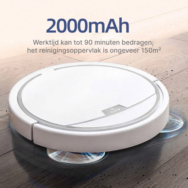 Een volledige oplaadcyclus duurt 3-4 uur en biedt tot 90 minuten schoonmaaktijd, voldoende voor de meeste huizen tot 200 vierkante meter.