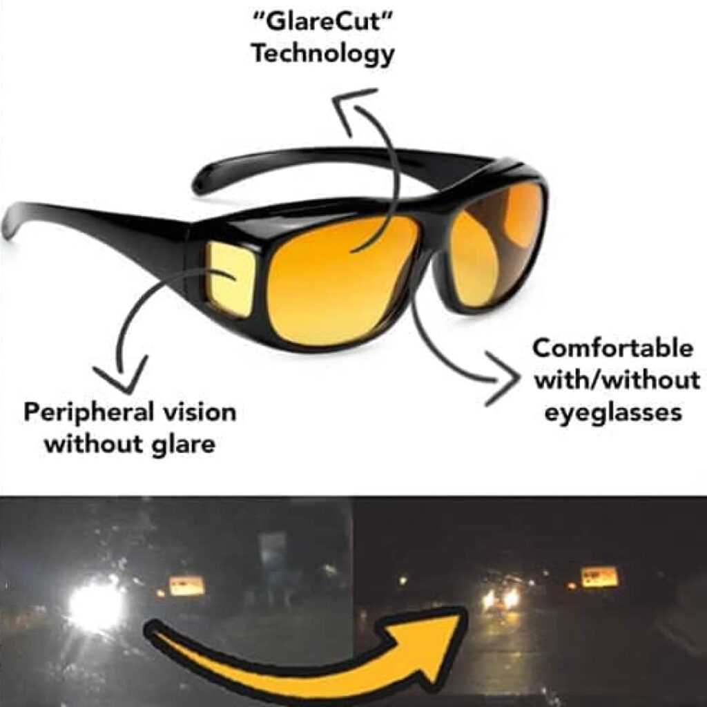 Designed to fit over prescription glasses, these night driving glasses cater to all users, whether they wear corrective lenses or not.