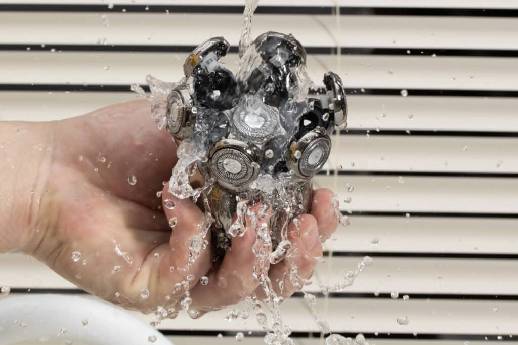 Ja, de IPX7 waterdichte certificering maakt veilig gebruik onder de douche mogelijk. Je kunt scheren met schuim of gel en het apparaat eenvoudig onder stromend water reinigen voor optimale hygiëne en gemak in je dagelijkse routine.