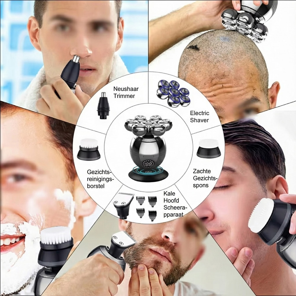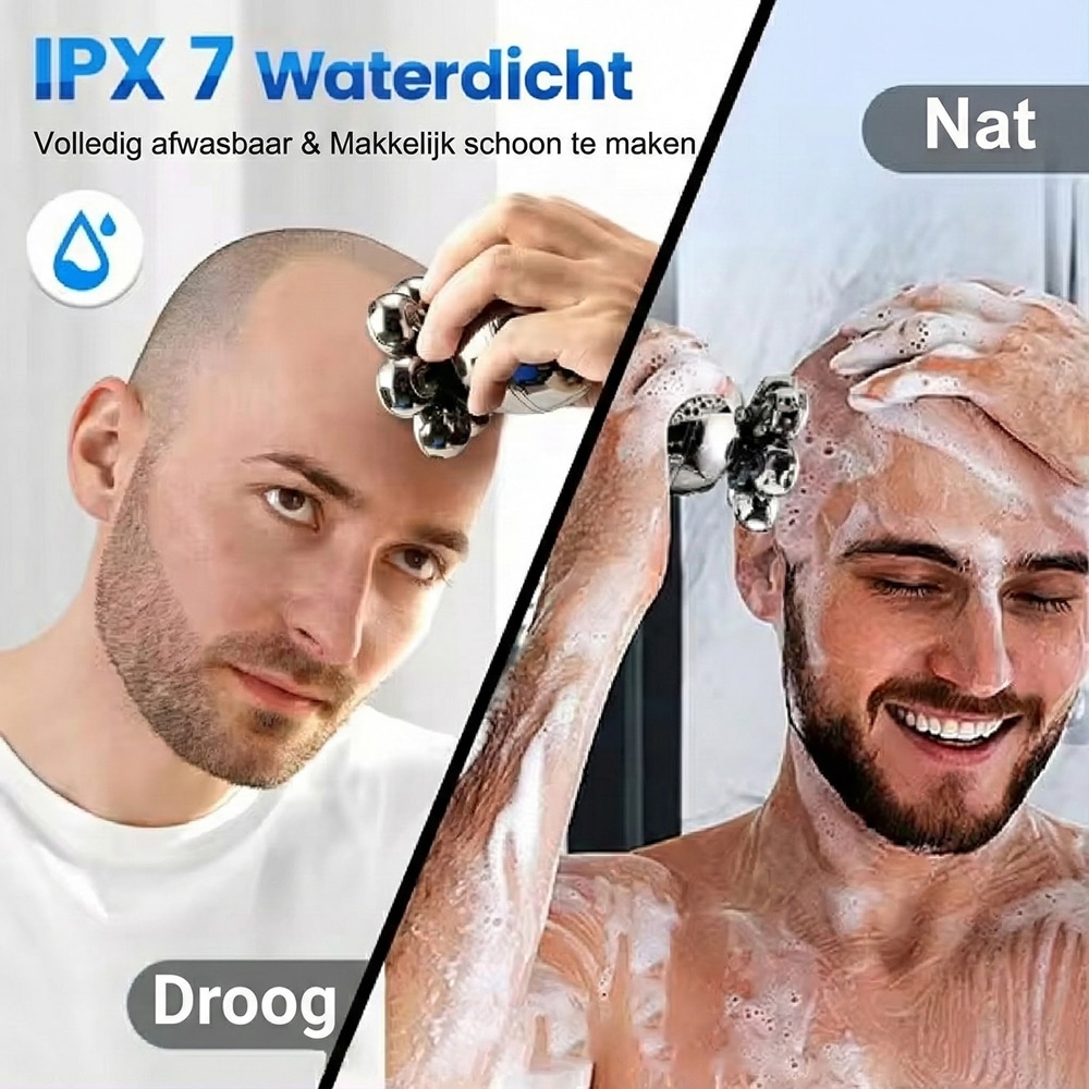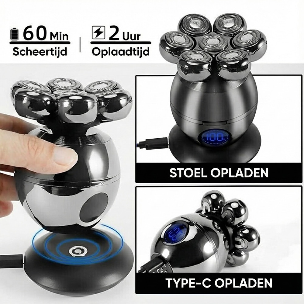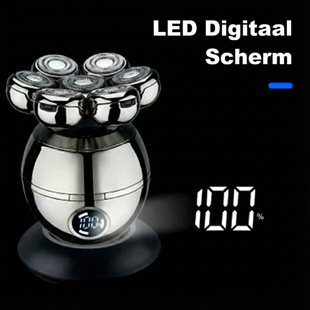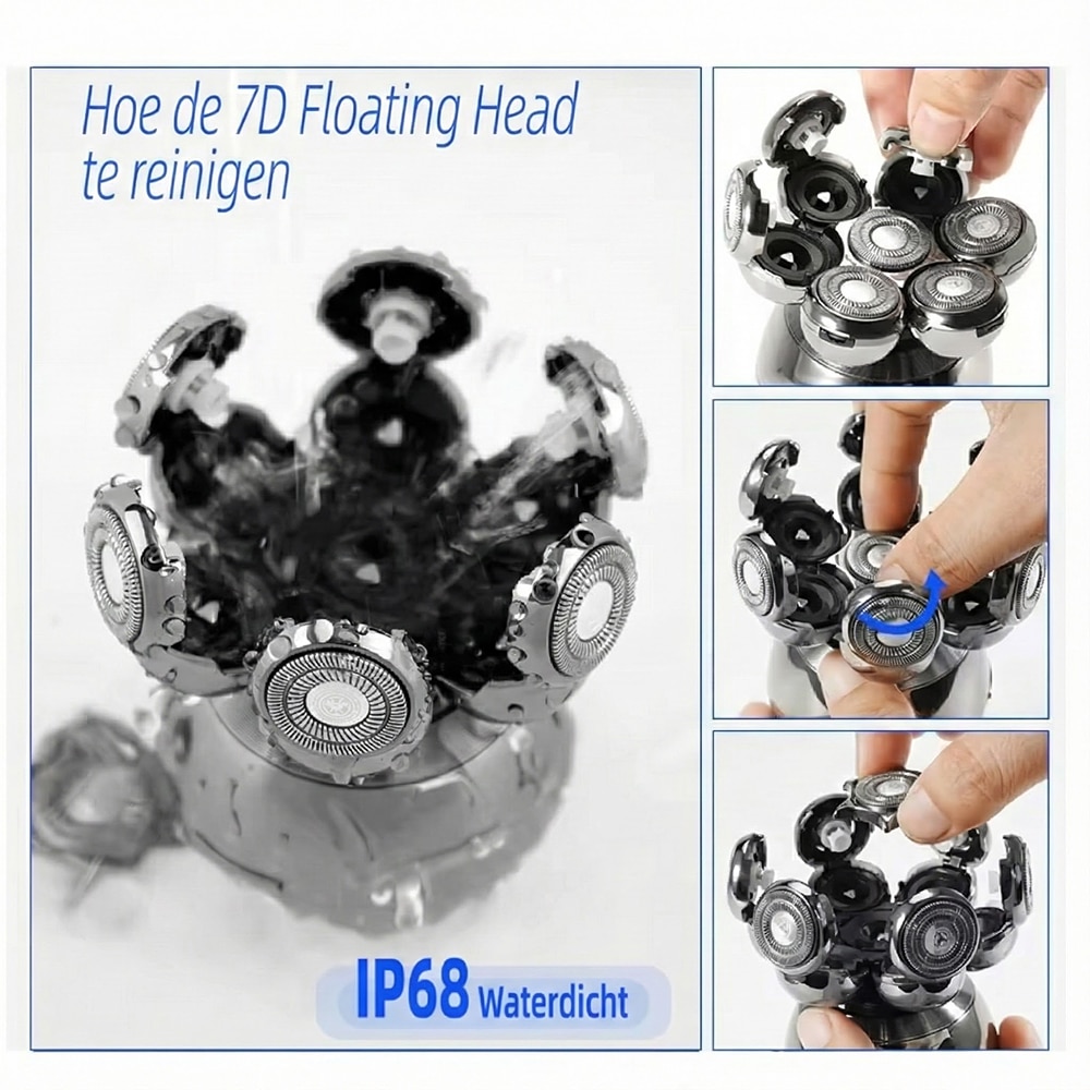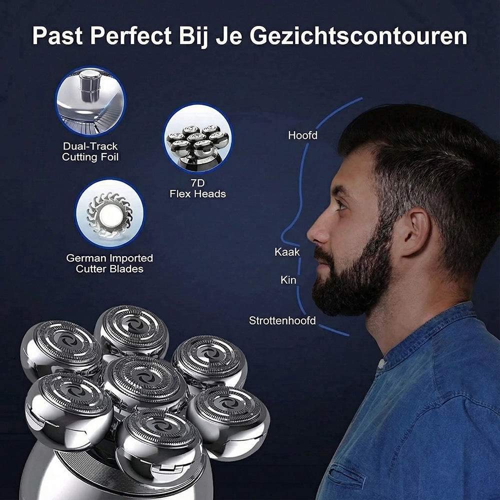 Het geavanceerde zeven-kops systeem beweegt onafhankelijk om gezichtscontouren te volgen. Dit biedt superieur comfort en precisie vergeleken met traditionele elektrische scheerapparaten met vaste koppen.