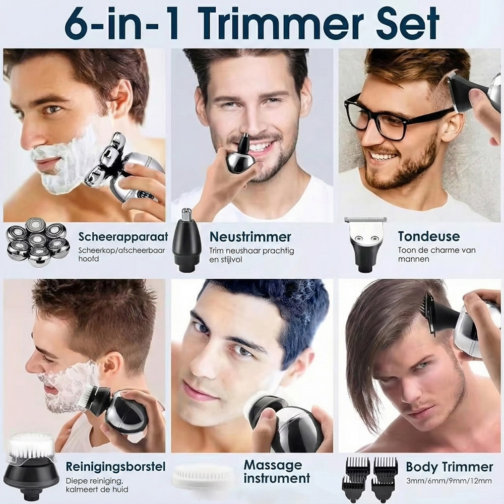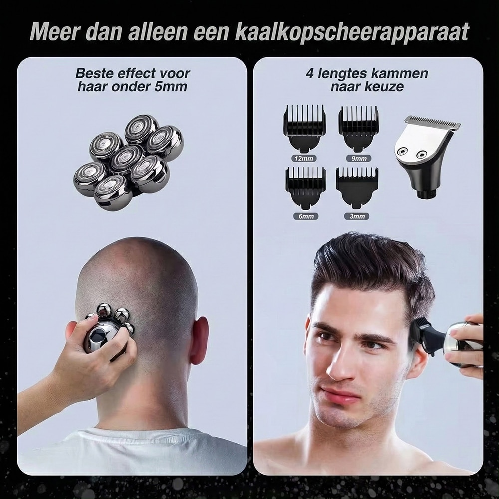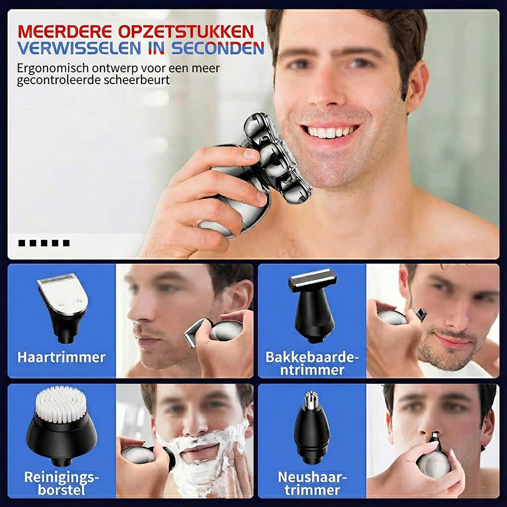Absoluut, het veelzijdige ontwerp is perfect voor beide toepassingen. De zwevende koppen passen zich aan aan hoofd- en gezichtscontouren, terwijl de verschillende opzetstukken precisietrimmen mogelijk maken voor elke gewenste stijl en lengte.