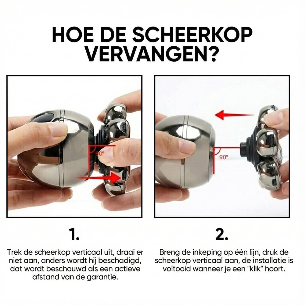 De scheerkoppen behouden optimale prestaties voor 12-18 maanden bij normaal gebruik. Wanneer je verminderde scheerprestaties of verhoogde irritatie opmerkt, is het tijd voor vervanging. Het LED-display kan ook een vervangingsindicator tonen.